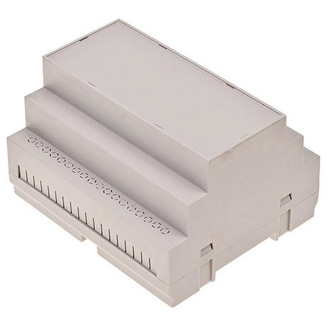 DIN Schienen Gehäuse aus ABS V0 Farbe Lichtgrau.