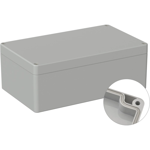 Hochwertiges Industriegehäuse aus Polycarbonat. Die Gehäuse sind geeignet für den Außenbereich, werkseitig eingezogene. Rundschnurdichtung Verschraubung der Deckelschrauben in hochwertige Gewindebuchsen. Kein Gewindeverschleiß auch bei mehrmaligen Öffnen. Platinen und Montageplatten können über Schraubdome im Unterteil sicher befestigt werden. Die gegen herausfallen gesicherten Deckelschrauben werden in hochwertige Gewindebuchsen eingeschraubt. Das Gehäuse kann mit Hilfe der Schraubkanäle im Unterteil an der Wand montiert werden. Große Bearbeitungsflächen und vielseitige Montagemöglichkeiten für Steckverbinder, Schalter und Tasten.