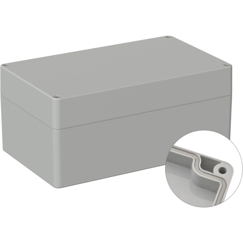 Hochwertiges Industriegehäuse aus Polycarbonat. Die Gehäuse sind geeignet für den Außenbereich, werkseitig eingezogene. Rundschnurdichtung Verschraubung der Deckelschrauben in hochwertige Gewindebuchsen. Kein Gewindeverschleiß auch bei mehrmaligen Öffnen. Platinen und Montageplatten können über Schraubdome im Unterteil sicher befestigt werden. Die gegen herausfallen gesicherten Deckelschrauben werden in hochwertige Gewindebuchsen eingeschraubt. Das Gehäuse kann mit Hilfe der Schraubkanäle im Unterteil an der Wand montiert werden. Große Bearbeitungsflächen und vielseitige Montagemöglichkeiten für Steckverbinder, Schalter und Tasten.