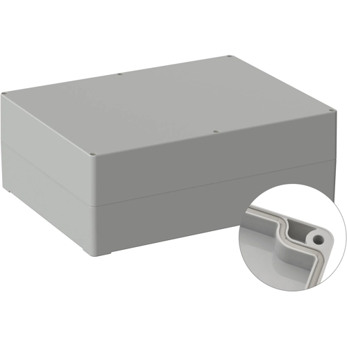 Hochwertiges Industriegehäuse aus Polycarbonat. Die Gehäuse sind geeignet für den Außenbereich, werkseitig eingezogene. Rundschnurdichtung Verschraubung der Deckelschrauben in hochwertige Gewindebuchsen. Kein Gewindeverschleiß auch bei mehrmaligen Öffnen. Platinen und Montageplatten können über Schraubdome im Unterteil sicher befestigt werden. Die gegen herausfallen gesicherten Deckelschrauben werden in hochwertige Gewindebuchsen eingeschraubt. Das Gehäuse kann mit Hilfe der Schraubkanäle im Unterteil an der Wand montiert werden. Große Bearbeitungsflächen und vielseitige Montagemöglichkeiten für Steckverbinder, Schalter und Tasten.