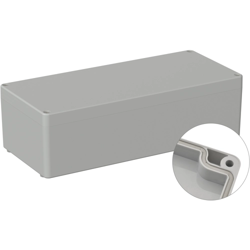Hochwertiges Industriegehäuse aus ABS, werkseitig eingezogene. Rundschnurdichtung Verschraubung der Deckelschrauben in hochwertige Gewindebuchsen, Kein Gewindeverschleiß auch bei mehrmaligen Öffnen. Platinen und Montageplatten können über Schraubdome im Unterteil sicher befestigt werden. Die gegen herausfallen gesicherten Deckelschrauben werden in hochwertige Gewindebuchsen eingeschraubt. Das Gehäuse kann mit Hilfe der Schraubkanäle im Unterteil an der Wand montiert werden. Große Bearbeitungsflächen und vielseitige Montagemöglichkeiten für Steckverbinder, Schalter und Tasten.