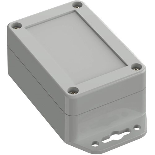 Hochwertiges Industriegehäuse aus Polycarbonat. Das Gehäuse ist mit direkt angeformten Wandlaschen ausgerüstet. Die gegen Herausfallen gesicherten Deckelschrauben werden in hochwertige Gewindebuchsen eingeschraubt. Leiterkarten können über Schraubdome im Unterteil sicher befestigt werden. Eingeschäumte hochwertige Dichtung (PU) Bearbeitungsflächen und vielseitige Montagemöglichkeiten für Steckverbinder, Schalter und Tasten.