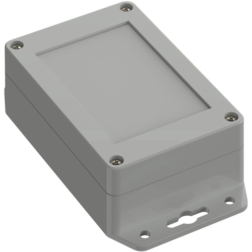Hochwertiges Industriegehäuse aus ABS. Das Gehäuse ist mit direkt angeformten Wandlaschen ausgerüstet. Die gegen Herausfallen gesicherten Deckelschrauben werden in hochwertige Gewindebuchsen eingeschraubt. Leiterkarten können über Schraubdome im Unterteil sicher befestigt werden. Bearbeitungsflächen und vielseitige Montagemöglichkeiten für Steckverbinder, Schalter und Tasten.