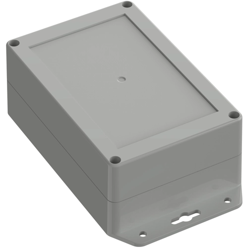 Hochwertiges Industriegehäuse aus ABS. Das Gehäuse ist mit direkt angeformten Wandlaschen ausgerüstet. Die gegen Herausfallen gesicherten Deckelschrauben werden in hochwertige Gewindebuchsen eingeschraubt. Leiterkarten können über Schraubdome im Unterteil sicher befestigt werden. Bearbeitungsflächen und vielseitige Montagemöglichkeiten für Steckverbinder, Schalter und Tasten.