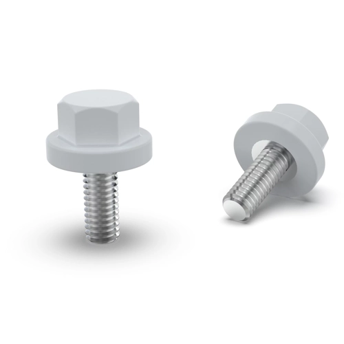 Sechskantschraube mit Bund, niedrige Ausführung, Polyamid, Gewinde: Stahl verzinkt, geformt.