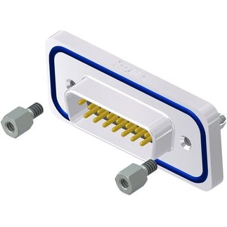 D-Sub Stift, IP67 Massiver Körper, 15-positionen, Abstandsbolzen mit Clip, Gewindeeinsatz.