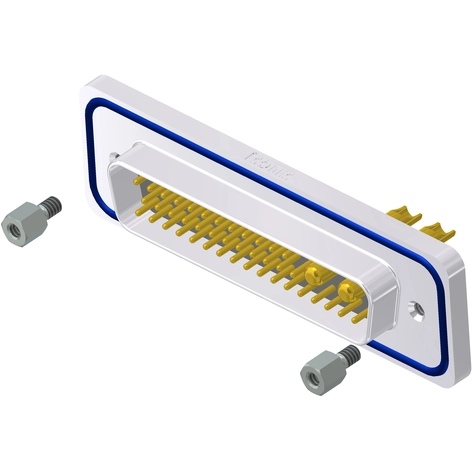 D-Sub Stiftleiste, IP67, Abstandsbolzen mit Clip, Gewindeeinsatz.