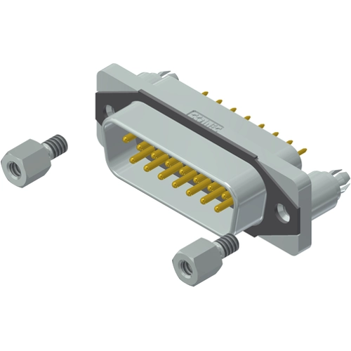 IP67 D-Sub SlimCon Filter Stiftleiste 15-positionen Lötstift mit geschlossenem 4-40 UNC Gewinde, Abstandsbolzen Clip und Sechskantschraube.