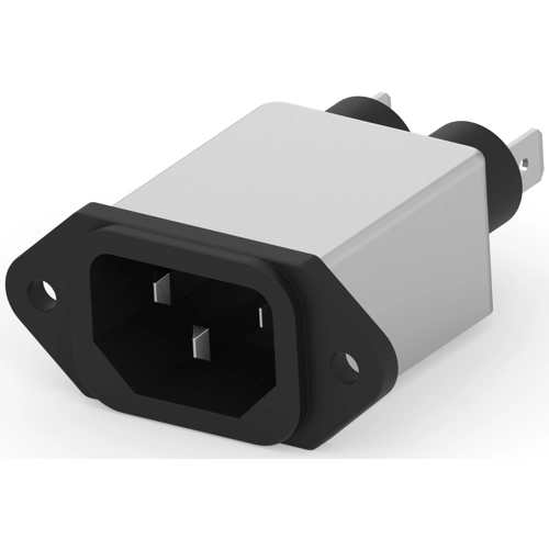 Multifunktionale Einlassfilter, Stromleitung, Rechter Winkel, 1 A, Geflanscht, IEC-Eingang, 0.250" FASTON Ausgang, 250 VAC, Gefiltert, IEC 60320-1 C-14.