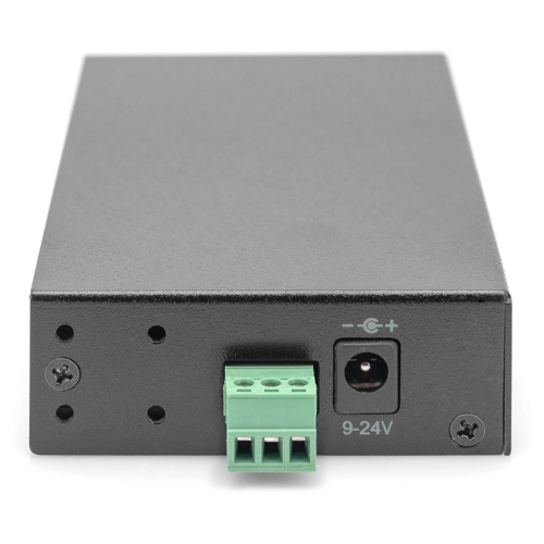 Der Industrial USB 3.0 Hub ist wegen seines Metallgehäuses ideal für Industrieanwendungen geeignet. Er kann an die Wand oder auch auf einer Trägerschiene montiert werden und wird an Computer, Notebook oder Server mit dem mitgelieferten USB 3.0 Kabel angeschlossen. Unterstützt wird USB 3.0 Superspeed mit einer Datenübertragungsrate von bis zu 5 Gbit/s, zeitgleich ist der Hub abwärtskompatibel zu USB 2.0 und USB 1.1. Der Hub kann über einen zweidrahtigen Klemmleisten-Anschluss (+9V bis 24V) mit Strom versorgt werden. Optional kann ein externes Netzteil an den DC-Jack angeschlossen werden.