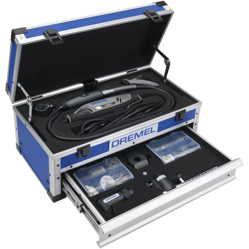 Der F0134250JK bietet dir ein ultimatives Erlebnis mit unbegrenzter Power. Schneiden/Trennen, Schnitzen, Schmirgeln, Schleifen, Polieren und Gravieren und vieles mehr ist mit diesem exklusiven Set des Dremel F0134250JK möglich. Es umfasst 128 Zubehöre und 6 Vorsatzgeräte für alle Arten von Anwendungen und Heimwerkerprojekten. Mit dem stabilen Tragekoffer kannst du dein Werkzeug bequem transportieren und hast alle Zubehöre und Vorsatzgeräte stets gut untergebracht. Von den anspruchsvollsten funktionalen Jobs bis zu detaillierten kreativen Projekten unterstützt dich dieses Set bei einer Vielzahl von Arbeiten.