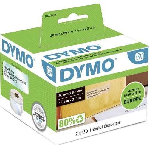 Papier Etiketten, (L x B) 89 x 36 mm, transparent, Rolle, S0722410, Packung mit 260 Stück