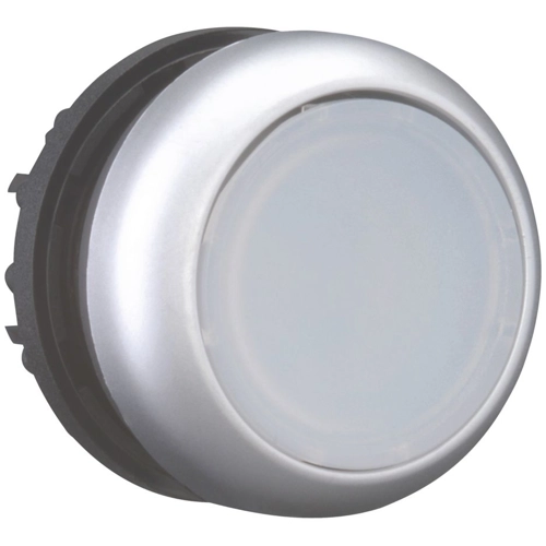 Drucktaster, beleuchtbar, tastend, Bund rund, weiß, Frontring silbergrau, Einbau-Ø 22.5 mm, 216922