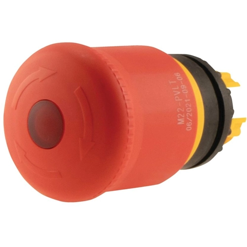 Der Not-Halt-Taster RMQ-Titan hat eine Pilzform mit einem Durchmesser von 38 mm. Er ist mit einem beleuchteten LED-Element ausgestattet und verfügt über eine Turn-to-Release-Funktion.