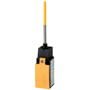 Das Gerät ist ein Positionsschalter mit einem Federstabantrieb, der eine komplette Einheit mit einem Schließer und einem Öffner bildet. Er ist mit Schraubklemmen ausgestattet, besteht aus isoliertem Material, ist für Betriebstemperaturen von -25 bis +70 °C geeignet und hat die Farbe Gelb.