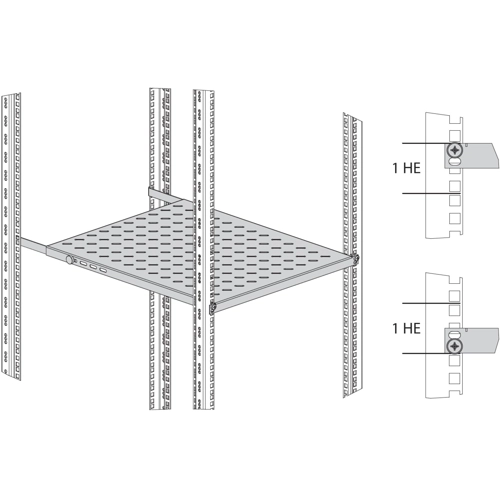 Der 691641FTS.12 Fachboden ist für den Einsatz in allen 19"-Netzwerk- und Serverschränken geeignet. Die Befestigung an den frontseitigen und rückseitigen 19"-Profilen ist erforderlich.