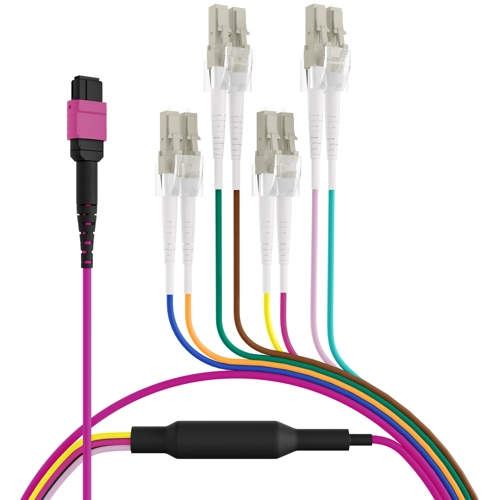 Das MTPF08LCOM4-20 ist ein 8-Faser-Patchkabel OM4, das für Übertragungsstrecken bis zu 100 Gigabit geeignet ist. Es hat einen 4 LC-Duplex Stecker auf der anderen Seite.