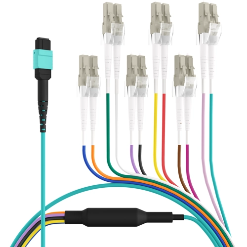 Das MTPF12LCOM3-10 ist ein 12-Faser-Patchkabel OS2, das für Übertragungsstrecken bis zu 100 Gigabit geeignet ist. Es hat einen 6 LC-Duplex Stecker auf der anderen Seite.