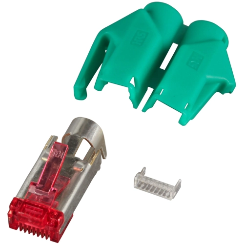 Das H7641.8-50 ist ein RJ45 Hirose Steckerset für Litzen. Das Set besteht aus RJ-Stecker, Knickschutztülle und Führungsplatte.