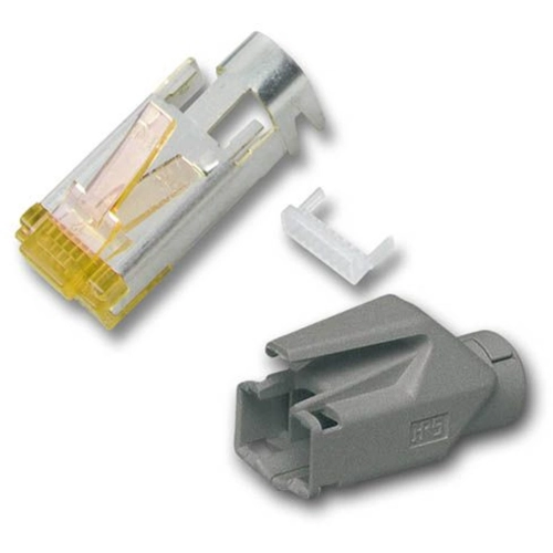Das H7642.12-50 ist ein RJ45 Hirose Steckerset für Litzen. Das Set besteht aus RJ-Stecker, Knickschutztülle und Führungsplatte.
