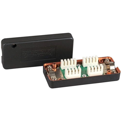 Cat.7 bis 600 MHz mit LSA Leisten. Mit dem Verbindungsmodul lassen sich Installationskabel verlängern bzw. beschädigte Kabel neu verbinden, ohne dass ein Kabelsegment komplett neu verlegt werden muss. Die zwei Kabelenden werden hierbei mittels LSA Schneidklemmen angeschlossen. Es lassen sich alle marktgängigen 4- oder 8-adrigen Installationskabel von AWG 26 - 22 bis zu einem Manteldurchmesser von 10 mm verarbeiten.