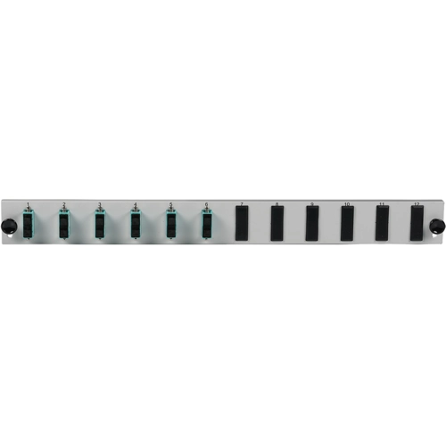 LWL-Frontblende, bestückte, 12 x 50/125 OM3, 6 x SC Duplex, senkrecht, 1-reihig, (B x H x T) 432 x 43.5 x 13 mm, grau, SB-FP-6SC-D-V-OM3