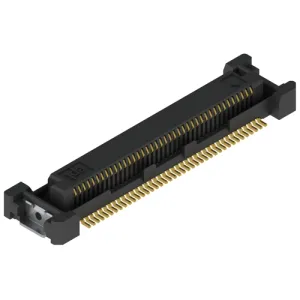 Zweireihiges, geschirmtes Leiterplatten-Steckverbindersystem in SMT-Technik, erfüllt PICMG COM Express, SFF-SIG CoreExpress und nanoETXexpress Anforderungen, für höchste Kontaktdichte auf kleinstem Raum, mit 5,0 oder 8,0 mm Leiterplattenabstand; Rastermaß: 0,5 mm, Übertragungsrate: bis 5,0 Gbit/s getestet (bis 8,0 Gbit/s möglich). Betriebsspannung: 50 VAC, Betriebsstrom: max. 0,5 A, Isolationswiderstand: min. 100 M Ohm, Durchgangswiderstand: max. 75 m Ohm, Prüfspannung: 200 VAC, Lebensdauer: 30 Steckzyklen, Kontaktmaterial: Cu-Legierung, Kontaktbeschichtung: Au über Nickel, Betriebstemperatur: –40 bis +85 °C.