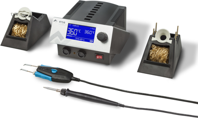 Die Zweikanal-Löt- und Entlötstation i-CON2 V ist eine konsequente Weiterentwicklung der bekannten i-CON2 auf Basis der zukunftsweisenden Ersa Vario-Plattform. Neben dem bisherigen Löt- und Entlötwerkzeug kann die Station auch die SMD-Entlötpinzette CHIP TOOL Vario und den PTH-Entlötkolben X-TOOL Vario ansteuern. Die Station nutzt ein intelligentes Powermanagement, um ihre Leistung dynamisch zwischen den angeschlossenen Werkzeugen zu verschieben. Die i-CON2 V überzeugt durch ihre intuitive One-Toch-Bedienung und das große Multifunktionsdisplay. Die Station erfüllt die ESD-Anforderungen. Diese CH-Version ist komplett ausgestattet mit einer Stromversorgungsstation (0IC223 und Netzkabel 3K153KR053075 mit Schweizer Ausgang), dem Lötkolben i-TOOL (0100CDJ) mit Lötspitze 0102CDLF16 und einem Antistatikhalter (0A52) sowie der Entlötpinzette CHIP TOOL VARIO (0460MDJ) mit Entlötspitzen 0462MDLF007 und Antistatikhalter (0A54).
