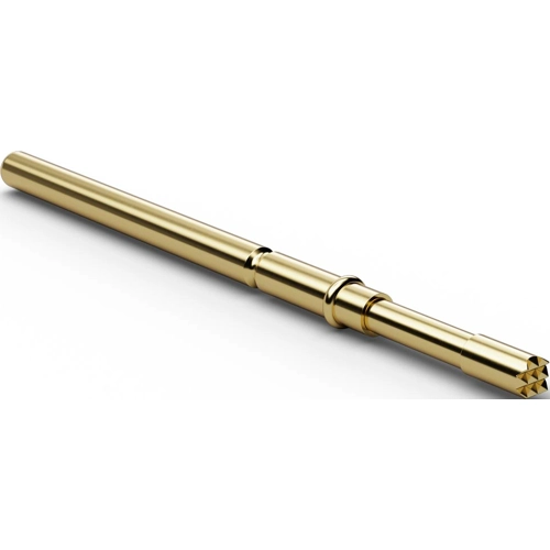 Technische Merkmale (Typ, Kolben mit Kopfdurchmesser (Kd), Material, Oberfläche (Lz-Gold ist Langzeitgold für besonders hohe Standzeit)): F772.06, Prüfstift m. Kopf 06, Kd 1,5 mm, CuBe, Gold.