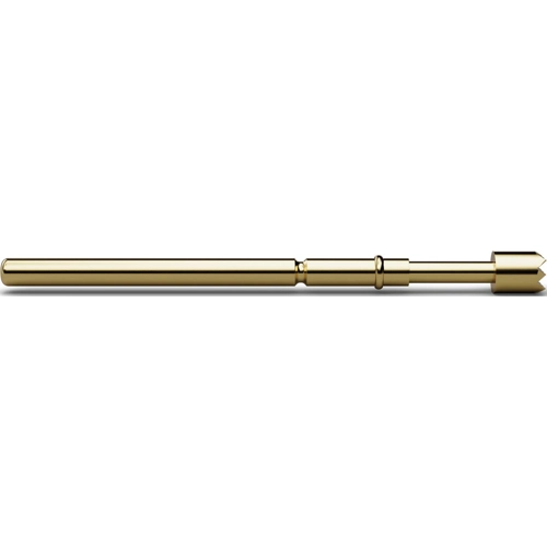 Technische Merkmale (Typ, Kolben mit Kopfdurchmesser (Kd), Material, Oberfläche (Lz-Gold ist Langzeitgold für besonders hohe Standzeit)): F772.06, Prüfstift m. Kopf 06, Kd 2,5 mm, CuBe, Gold.