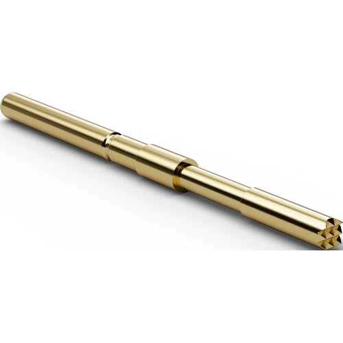 Für bestückte Leiterplatten und SMD, einsetzbar für starke mechanische Beanspruchungen und hohe Ströme; Maximal-Federweg: 8,0 mm, empfohlener Federweg: 6,4 mm, Vorspannung: 80 cN, Federkraft bei empfohlenem Federweg: 300 cN ±20 %, Treffgenauigkeit: ±0,1 mm, Temperatur: -20 bis +80 °C, Maximal-Dauerstrom: 10 A, typischer Durchgangswiderstand: 25 mOhm, Mantel: Bronze, vergoldet, Feder: Federstahl, versilbert, Hülse: Neusilber, vergoldet, Kopfform: 06 abgesetzte Waffel, 14 abges. Vierfach-Krone.
