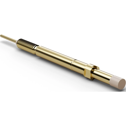 Kann mit unterschiedlichen Hülsen kombiniert werden. Die Herausragehöhe ist variabel; Maximal-Federweg: 5,0 mm, empfohlener Federweg: 4,0 mm, Vorspannung: 80 cN, Treffgenauigkeit: ±0,08 mm, Schaltweg: 1,7 mm ±0,2 mm, Temperatur: -20 bis +80 °C, Maximal-Schaltstrom: 1,0 A, typischer Durchgangswiderstand: 50 mOhm, Maß L: Typ S und SM 44,8 mm, Typ L und LM 51,3 mm, Mantel: Messing, vergoldet, Feder: Federstahl, versilbert, Hülse: Messing, vergoldet, Kopfformen: 05 abgesetzter Innenkonus (Tulpe), 06 abgesetzte Waffel, 07 abges. 6fach-Außenkrone 90°, 16 Flachkopf, 17 abges. Flachkopf.