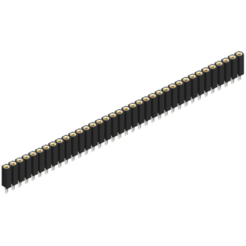 Buchsenleiste, Präzisionsbuchsenleisten für 0,635 mm und Ø bis 0,85 mm. Lötfreie Einpresstechnik, elastische Einpresszone.