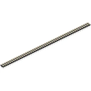 Buchsenleiste, niedrige Bauhöhe, nur 2,7/3,1 mm über Leiterplatte, mit Kontaktfeder für Ø 0,5 mm Stifte, Löt- und Steckstift Ø 0,76 mm.