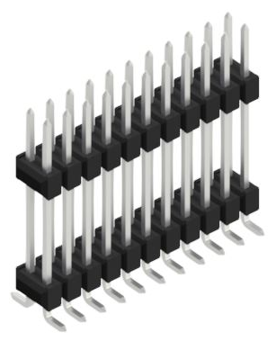 Stiftleiste zur Verbindung übereinanderliegender Leiterplatten, 0,635 mm.