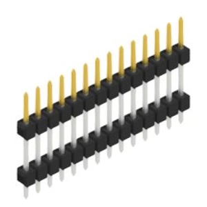 Sandwich-Stiftleiste, einreihig, 0,635 mm, zur Verbindung übereinanderliegender Leiterplatten.