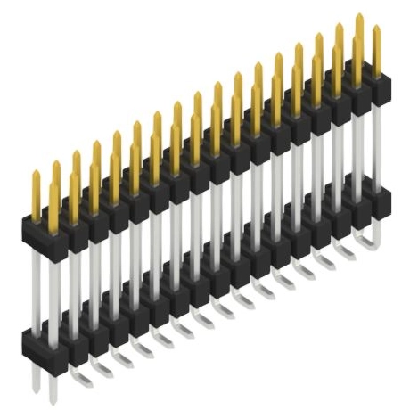 Stiftleiste zur Verbindung übereinanderliegender Leiterplatten, 0,635 mm.