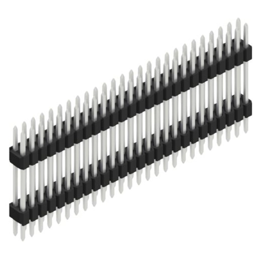 Sandwich Stiftleiste, zweireihig, 0,4 mm, zur Verbindung übereinanderliegender Leiterplatten, Raster 1,27 x 1,27 mm.