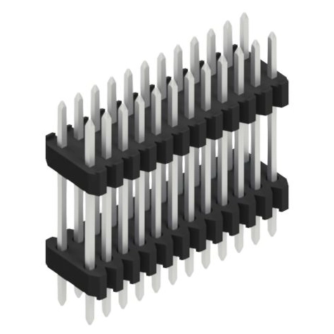 Sandwich Stiftleiste, zweireihig, 0,4 mm, zur Verbindung übereinanderliegender Leiterplatten, Raster 1,27 x 1,27 mm.