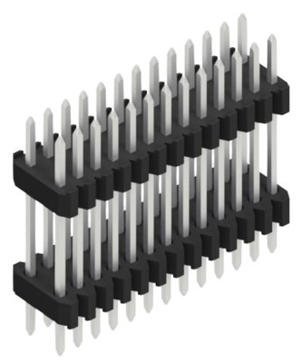 Sandwich Stiftleiste, zweireihig, 0,4 mm, zur Verbindung übereinanderliegender Leiterplatten, Raster 1,27 x 1,27 mm.