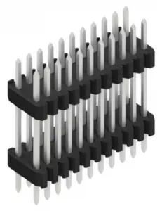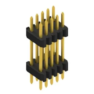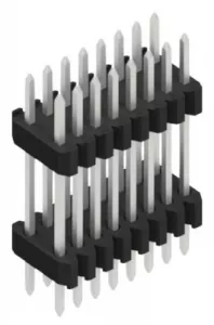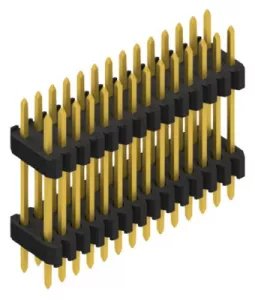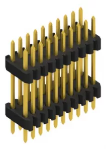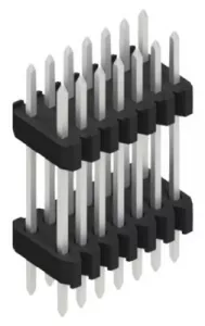 Sandwich Stiftleiste, zweireihig, 0,4 mm, zur Verbindung übereinanderliegender Leiterplatten, Raster 1,27 x 1,27 mm.
