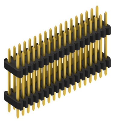 Sandwich Stiftleiste, zweireihig, 0,4 mm, zur Verbindung übereinanderliegender Leiterplatten, Raster 1,27 x 1,27 mm.