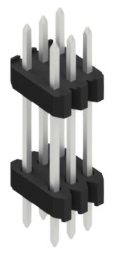 Sandwich Stiftleiste, zweireihig, 0,4 mm, zur Verbindung übereinanderliegender Leiterplatten, Raster 1,27 x 1,27 mm.