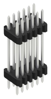 Sandwich Stiftleiste, zweireihig, 0,4 mm, zur Verbindung übereinanderliegender Leiterplatten, Raster 1,27 x 1,27 mm.