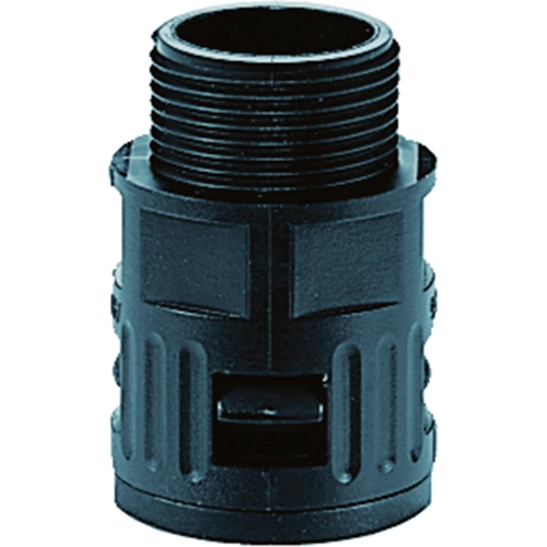 Mit Außengewinde und Sechskantschlüsselfläche, Anschlussgewinde metrisch nach EN 60423, rationelle Montage durch einteilige Verschraubung mit push-in-Verschluss, einfache Demontage durch Verschieben der Rasthülse, konisch dichtend, beständig gegen Öl und Benzin, halogen-, silikon- und cadmiumfrei.
