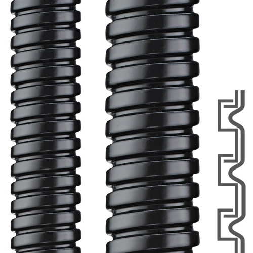 Metallschutzschlauch, wendelgewickelt, S Profil und PA-Mantel.