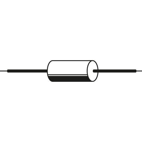 Axialer Anschluss, geeignet für den Einsatz als Kontaktfilter; Nennspannung: 250 VAC. Verpackung: geformte Kunststoffdose. Anschluss: isolierte Anschlussleitung NYFAFW 0,5 mm², 75 mm Länge, 5,0 mm abisoliert.