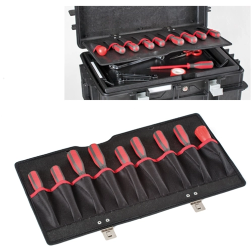 Das AIPANEL PTS ist eine praktische Werkzeugeinlage, die optional am Deckel des ALL.IN.ONE angebracht werden kann. Mit einseitigen Taschen.