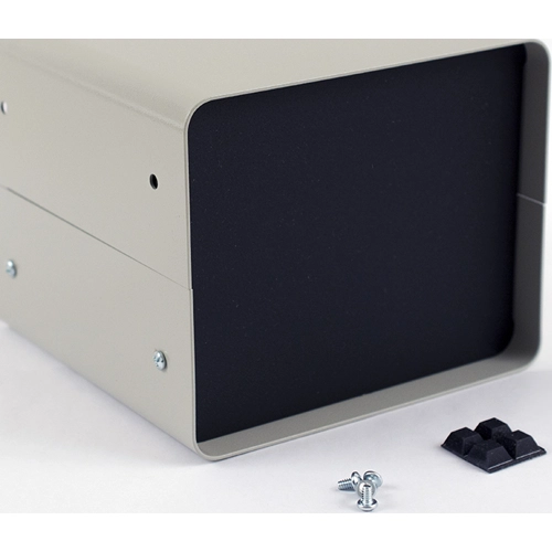 - Leicht zu bearbeitende 0,064" dicke Aluminiumplatten, Vorderseite in satiniertem Schwarz und belüftete Rückseite in Beige ausgeführt.