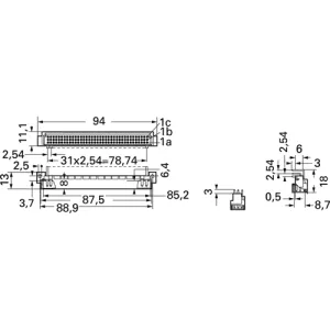 Messerleiste, Typ C, 32-polig, a-b-c, RM 2.54 mm, Lötstift, gerade, 09033322921